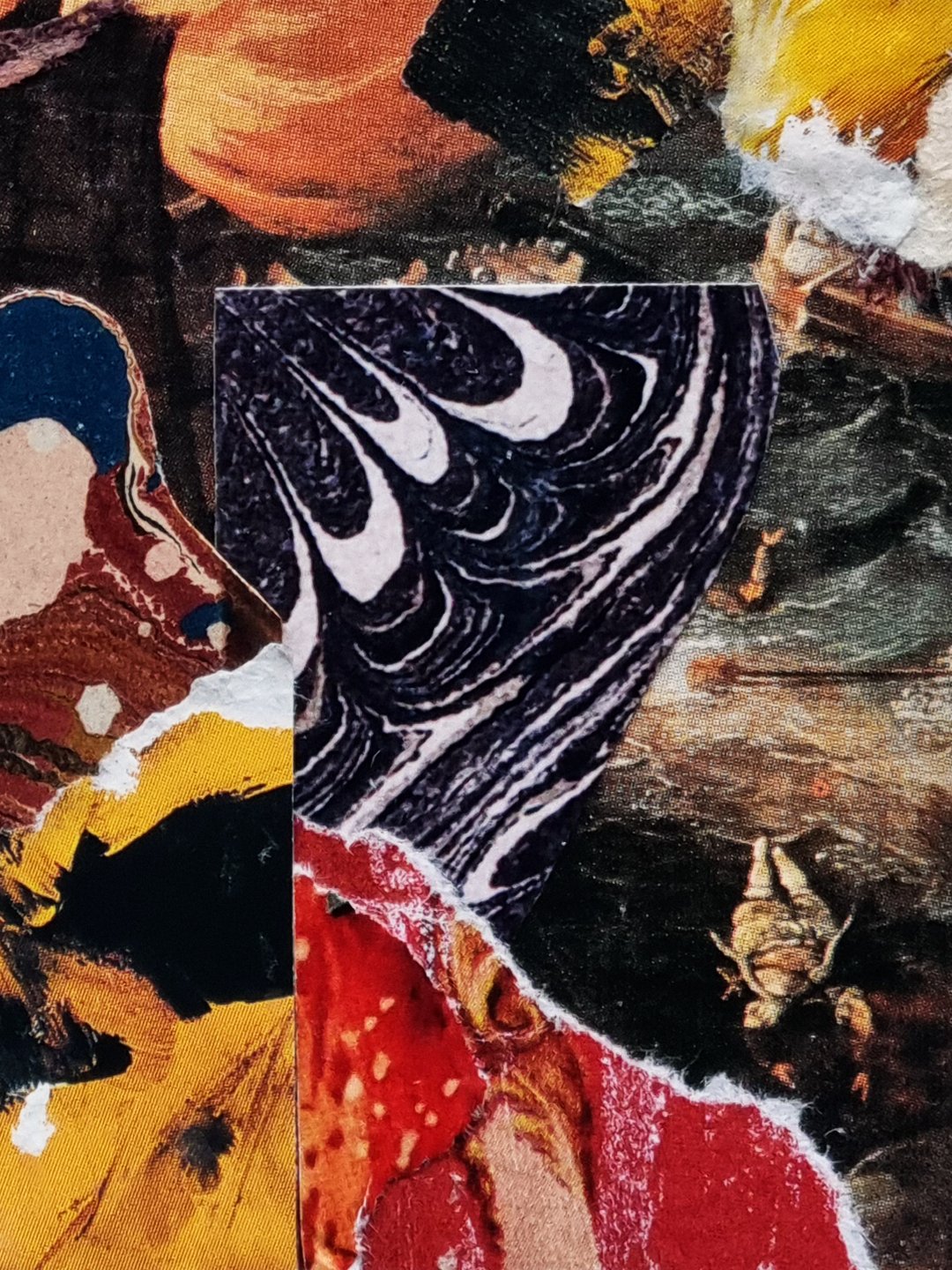 The collage works in the series are A6 – classic postcard size – and carefully constructed of intricate paper layers; art book cutouts, antique ephemera, vintage magazines, handmade tissue, beautiful scraps, and the amazing @commonsourcecollage.