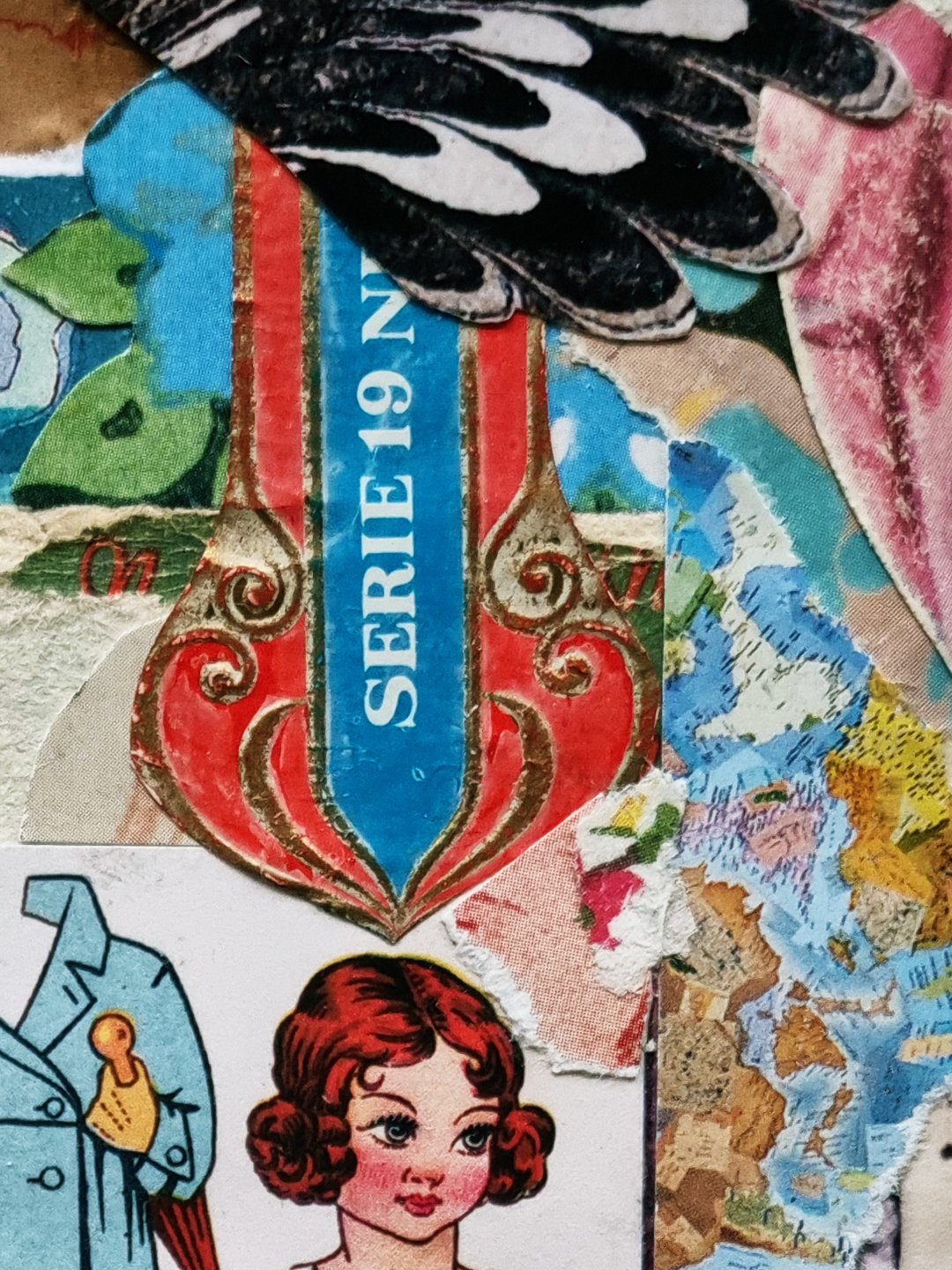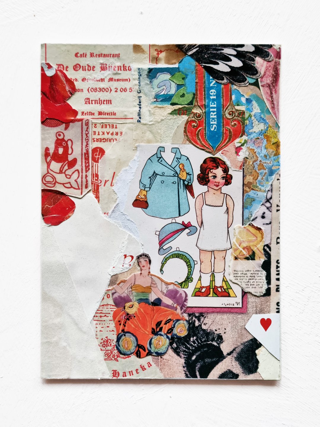 The collage works in the series are A6 – classic postcard size – and carefully constructed of intricate paper layers; art book cutouts, antique ephemera, vintage magazines, handmade tissue, beautiful scraps, and the amazing @commonsourcecollage.