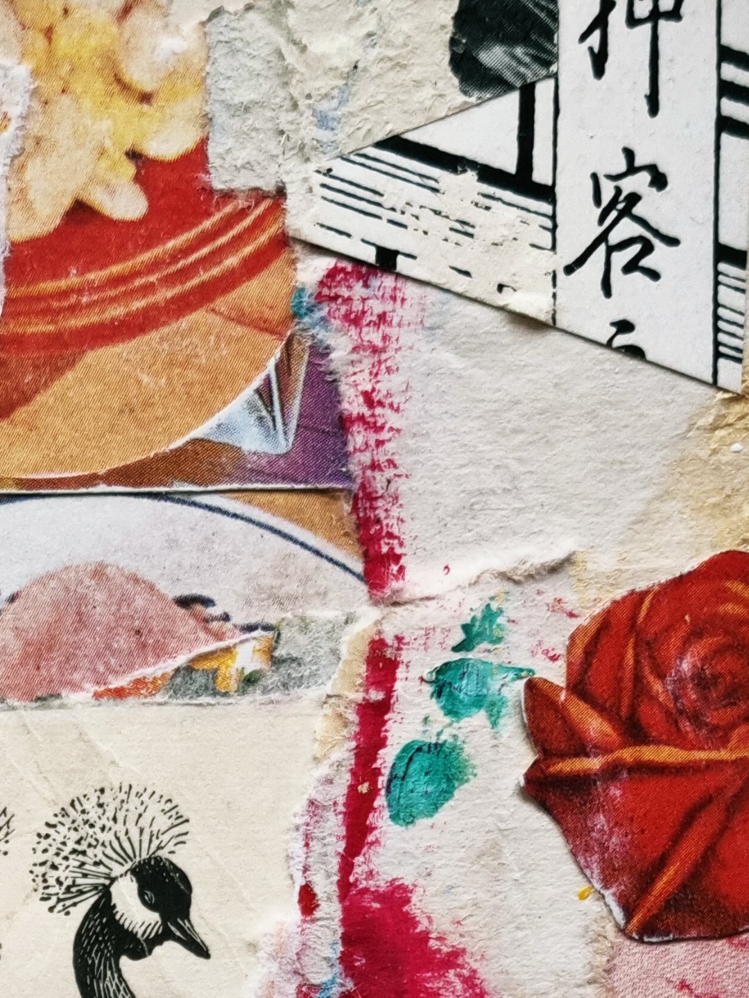 The collage works in the series are A6 – classic postcard size – and carefully constructed of intricate paper layers; art book cutouts, antique ephemera, vintage magazines, handmade tissue, beautiful scraps, and the amazing @commonsourcecollage.