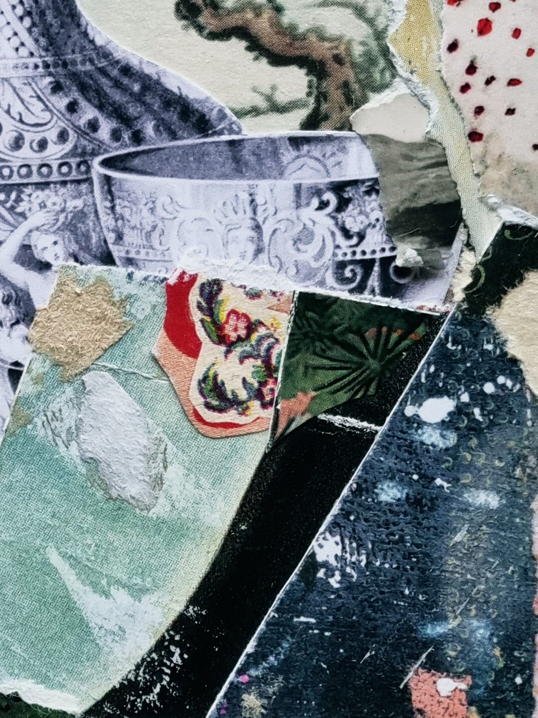 The collage works in the series are A6 – classic postcard size – and carefully constructed of intricate paper layers; art book cutouts, antique ephemera, vintage magazines, handmade tissue, beautiful scraps, and the amazing @commonsourcecollage.