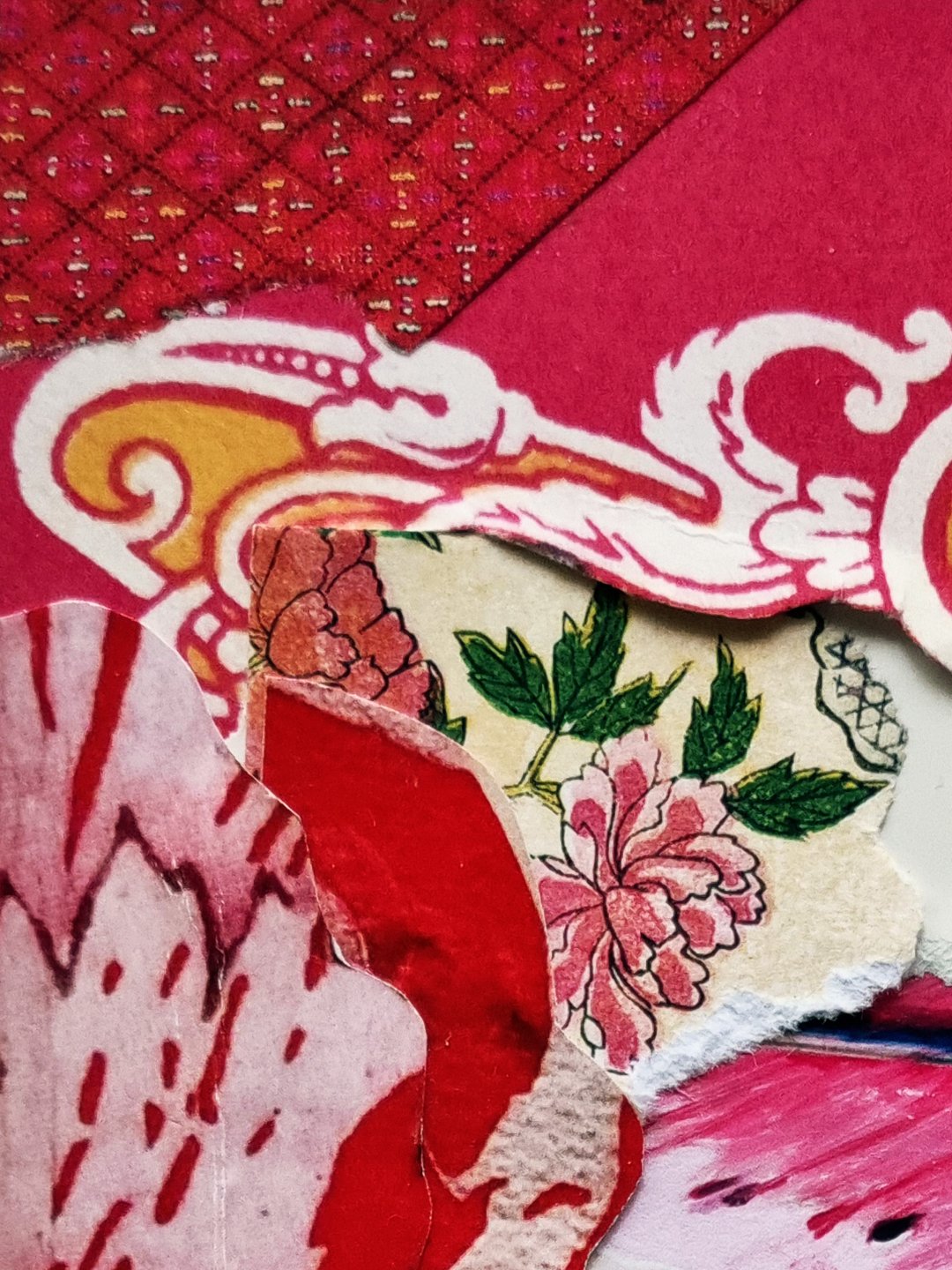 The collage works in the series are A6 – classic postcard size – and carefully constructed of intricate paper layers; art book cutouts, antique ephemera, vintage magazines, handmade tissue, beautiful scraps, and the amazing @commonsourcecollage.